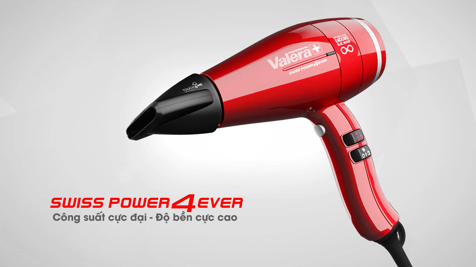 Máy sấy tóc Valera Swiss Power4ever được trao Giải thưởng Plus X danh giá cho thiết kế và chất lượng tốt nhất. Mô hình ổn định áp suất siêu mạnh này không chỉ tự hào có công suất cao lên đến 85 mét khối một giờ, mà còn có áp suất tốt và bộ tập trung rất hẹp, tận dụng tối đa luồng không khí mạnh mẽ. Theo đánh giá của nhiều thợ làm tóc chuyên nghiệp, máy sấy tóc có công suất 2400 W làm khô tóc nhanh hơn khoảng 50% so với các loại máy cùng hãng.