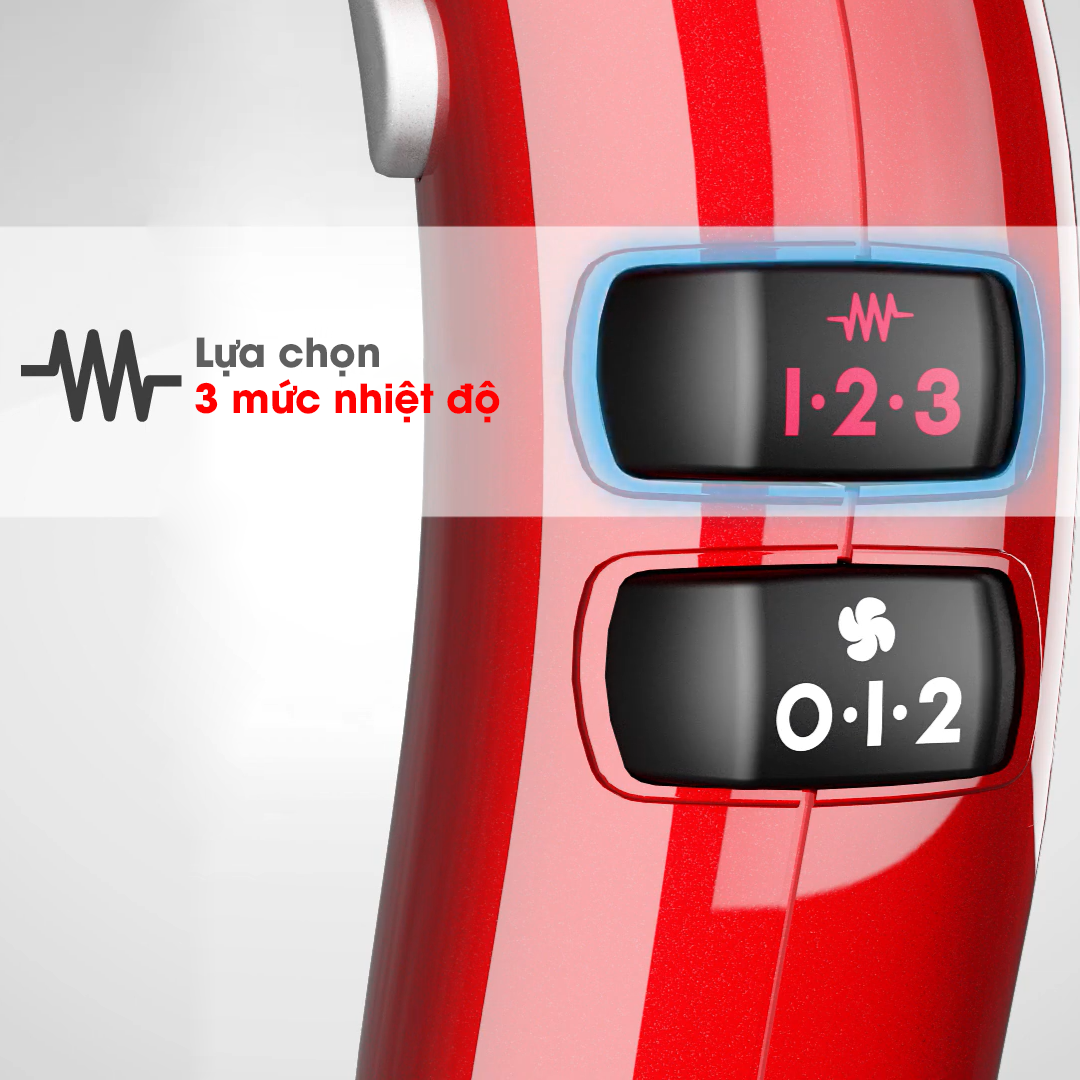 Được cài đặt tới 3 mức lưu lượng gió – 3 lựa chọn nhiệt độ, người dùng hoàn toàn có thể lựa chọn mức gió nóng hay lạnh tuỳ theo nhu cầu sử dụng. Từ đó cho bạn trải nghiệm quá trình làm khô tóc chuyên nghiệp như ngoài Salon.